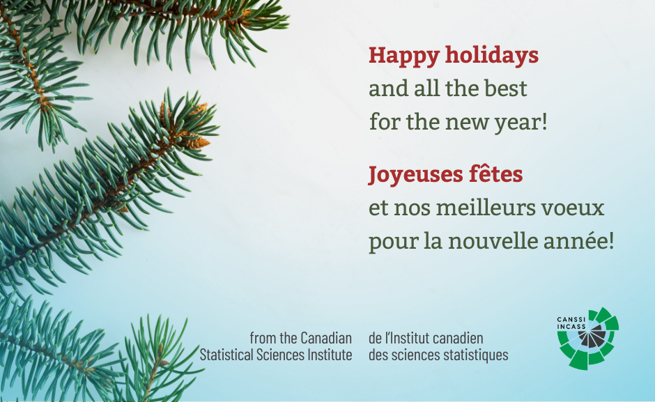 The year is coming to a close, and we are grateful for the many opportunities we have had to meet, speak, and collaborate with you to build up Canada’s statistical sciences community. The research, training, and service activities you undertake each day contribute to the solution of problems in many areas, and we are proud to support your efforts.